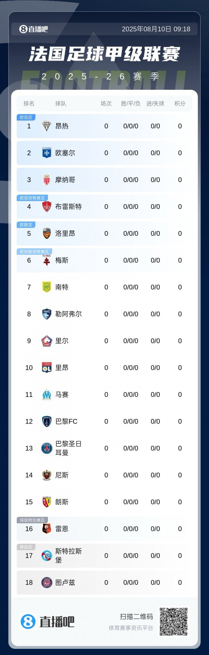 25/26 Mùa Ligue 1 18 Đội