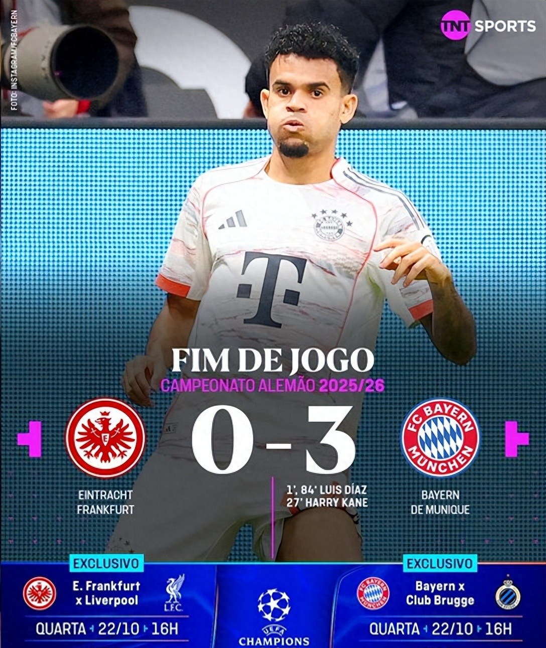 Trong một cuộc đối thoại lớn trong vòng 6 của Bundesliga, Frankfurt đã tổ chức nhà vô địch bảo vệ Bayern Munich tại nhà. Trong trò chơi này, với điểm mở màn của Dias & của Dias hai lần và hỗ trợ Kane ba bàn thắng, Bayern đã đánh bại Frankfurt 3-0 và giành 6 chiến thắng giải đấu liên tiếp và 10 chiến thắng liên tiếp trong mùa giải chính kể từ đầu mùa giải mới!