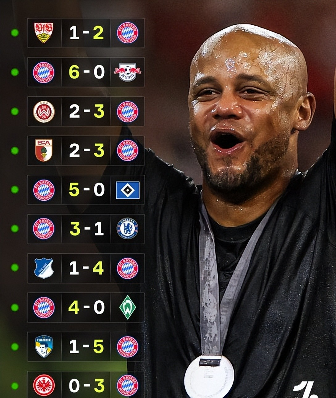 Không có vấn đề gì, Bayern mùa này chắc chắn là đội bóng tốt nhất trong bóng đá châu Âu với sức mạnh và sự ổn định tốt nhất từ kết quả đến kết quả và hiệu suất. Có lẽ còn quá sớm để tưởng tượng mục tiêu của vương miện treble hoặc lớn hơn, nhưng xem xét tiến trình mà Kompany đã mang lại cho đội này, có một số thành tựu mà người hâm mộ Bayern thực sự có thể tưởng tượng!