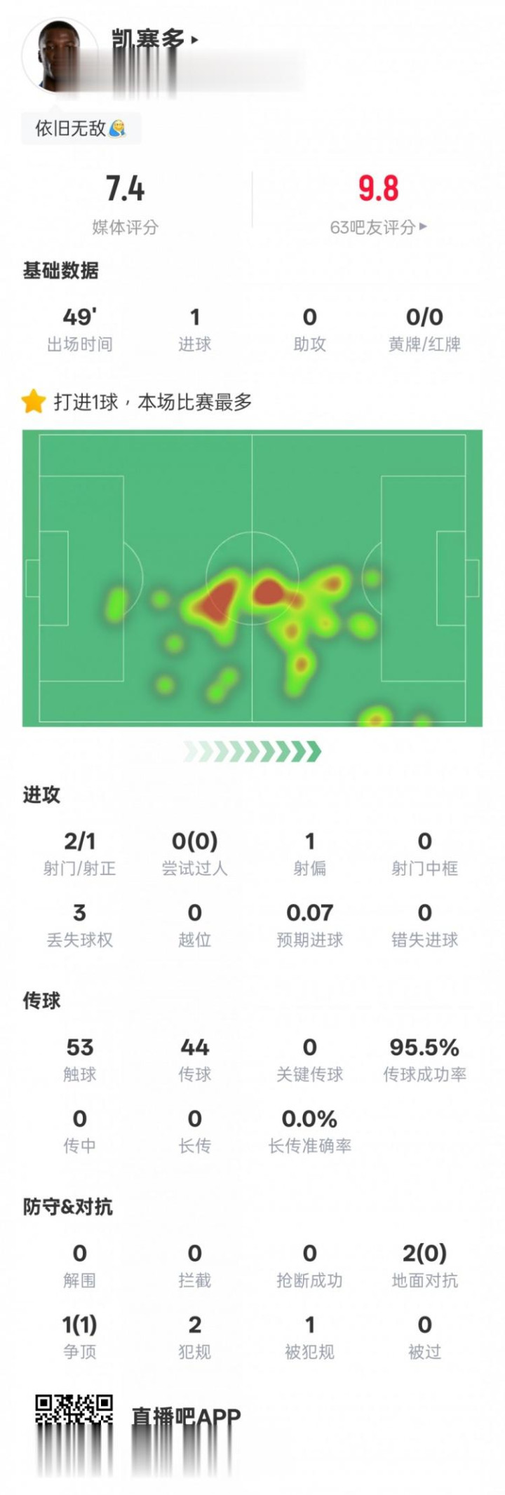 Số liệu thống kê của Caicedo cho trận đấu này như sau: