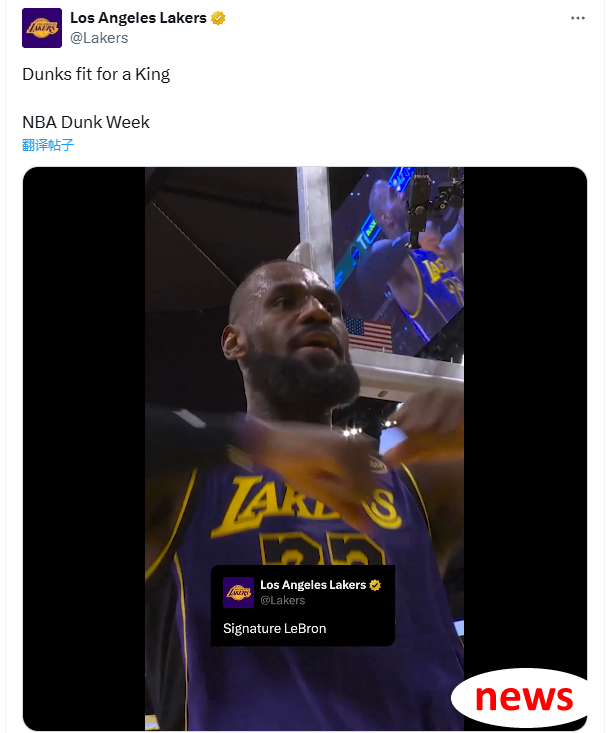 Các Lakers cũng đã đăng một điểm nổi bật của James 'mùa trước, với chú thích: The King's Dunk từ The King, NBA Dunk Tuần lễ.