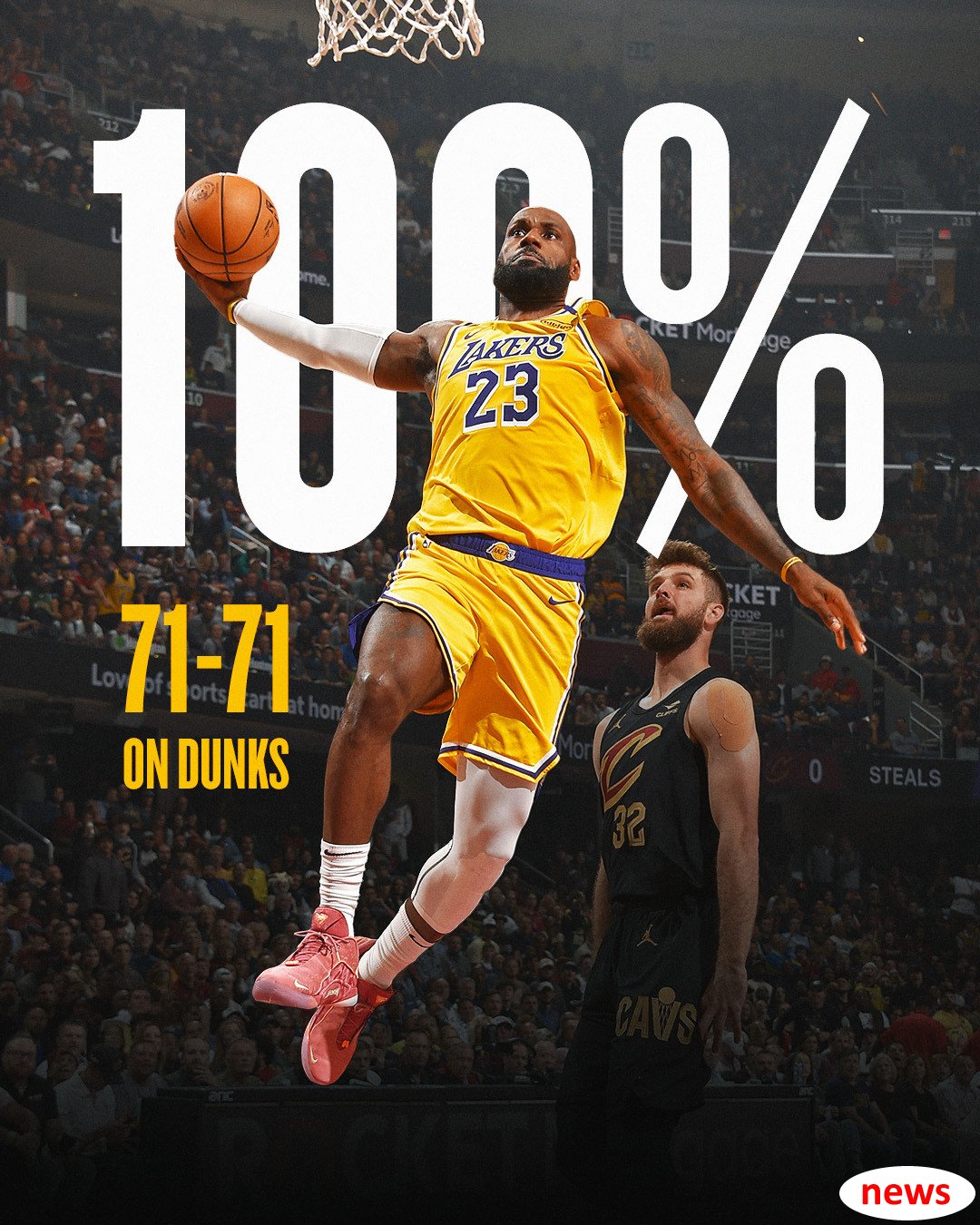 Vào ngày 25 tháng 7, NBA chính thức phát hành bản thu âm do James thiết lập. Anh ấy đã tạo ra tất cả 71 Dunks trong một mùa giải và trở thành cầu thủ duy nhất trong giải đấu làm điều đó. Áp phích chính thức được đăng và viết: Trong số hơn 50 lần thử Dunk mùa trước, ai là cầu thủ duy nhất có tỷ lệ bắn súng là 100%? Ai khác có thể ở bên cạnh các vị vua (LeBron James) trong mùa thứ 22 của họ trong sự nghiệp của họ?